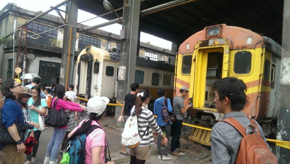 (民眾參觀台北機廠內陳列的火車/臺北機廠文史守護聯盟提供)