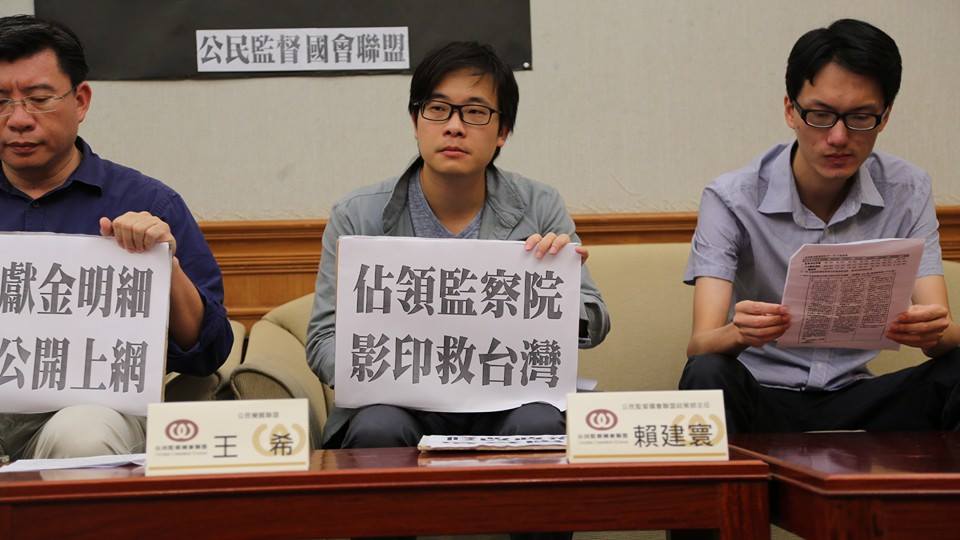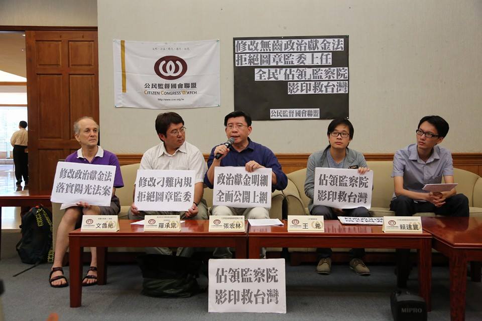 公民監督盟國會聯盟(公督盟)今(24)日和公民1985行動聯盟、南台科技大學助理教授羅承宗及綠黨中執委文魯彬等人一同召開記者會,呼籲現任監察委員在卸任前徹底檢討、修改目前的政治獻金法,因為「政治獻金法」已經成為「收賄解套法」。這些民間團體並發起「佔領監察院,影印救台灣」活動,希望民眾可以一同響應g0v零時政府的「開放政治獻金」專案,讓民眾可以上網查詢到政治人物的獻金專戶。