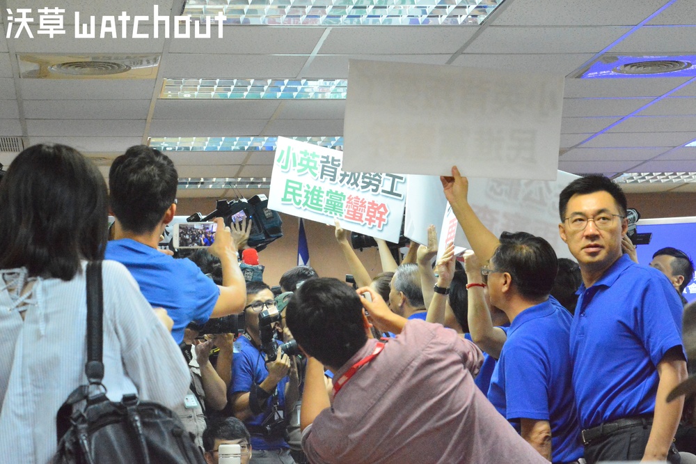勞團於立院外高聲抗議,負責審查一例一休《勞基法》修正案的社福衛環委員會,今日則是於一片混亂中通過審查。為了阻擋審查,國民黨立委於昨(4)日晚間就進駐委員會,但民進黨今日臨時變更會議室,讓國民黨立委的「守夜」形同白費工夫。而今日主持審查的社福衛環召委陳瑩宣布開會後,同黨籍立委陳曼麗即提議停止詢答、停止討論,隨後,在議事人員於國民黨團抗議聲中宣讀完條文後,主席便宣告議案出委員會、送協商。於是,全案在沒有公開詢答、公開討論的情況下,通過委員會。