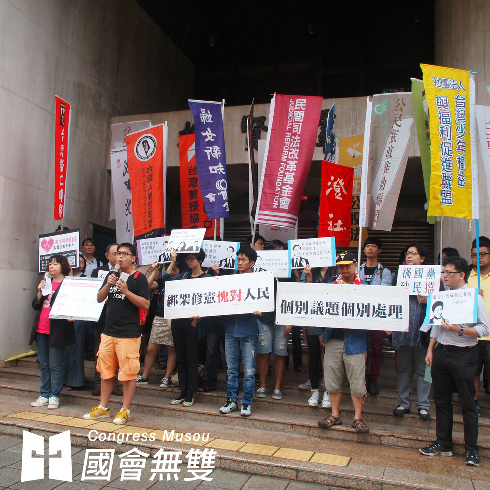 (多個公民團體今天早上也到立法院外召開記者會,要求國民黨不要用政治計算綁架民間已經有共識的降低投票年齡、降低修憲門檻等憲改內容。薛翰駿/攝影)