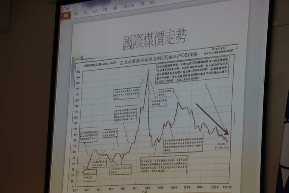 「台電過度投資的問題太多了,例如購煤弊案、民營電廠利益輸送、核四不當採購。」王塗發表示,台電成本墊高的原因,當然包括國際能源上漲,但2008年之後,國際煤價大幅下跌,比起三大過度投資的問題,國際能源價格的影響性,未必如台電所述得那麼大。