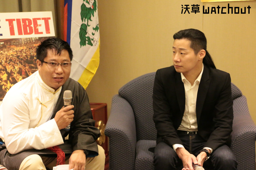 西藏人民議會議員洛桑扎巴(左)與立法委員林昶佐(右)進行交流。(攝影/何宇軒)