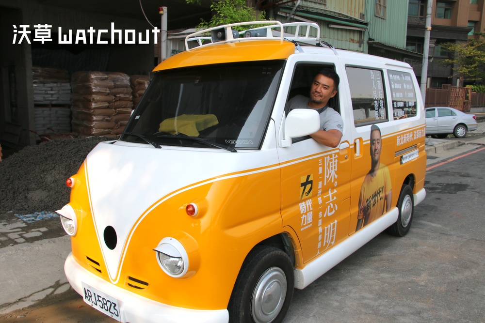 雖咬牙買下胖卡宣傳車,但陳志明為了省下人事費用,自己兼做司機。(攝影/廖昱涵)
