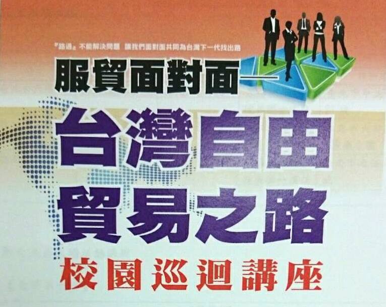 《工商時報》主辦的「服貿面對面──台灣自由貿易之路」校園巡迴演講,第一站就來到台大社科院,並為前50名簽到者準備了100元7-11禮券,以及行動電源、租車券、住宿券等多項抽獎贈品。由於台大已經舉辦過畢業典禮,現在正值期末考前的溫書時刻,幾乎沒有學生到場,整場講座開場一小時後,僅12位聽眾入場,因此主辦單位從附近兆豐銀行的兩家分行請來約60名員工助陣,最後讓台大社科院的國際演講廳八成滿座。