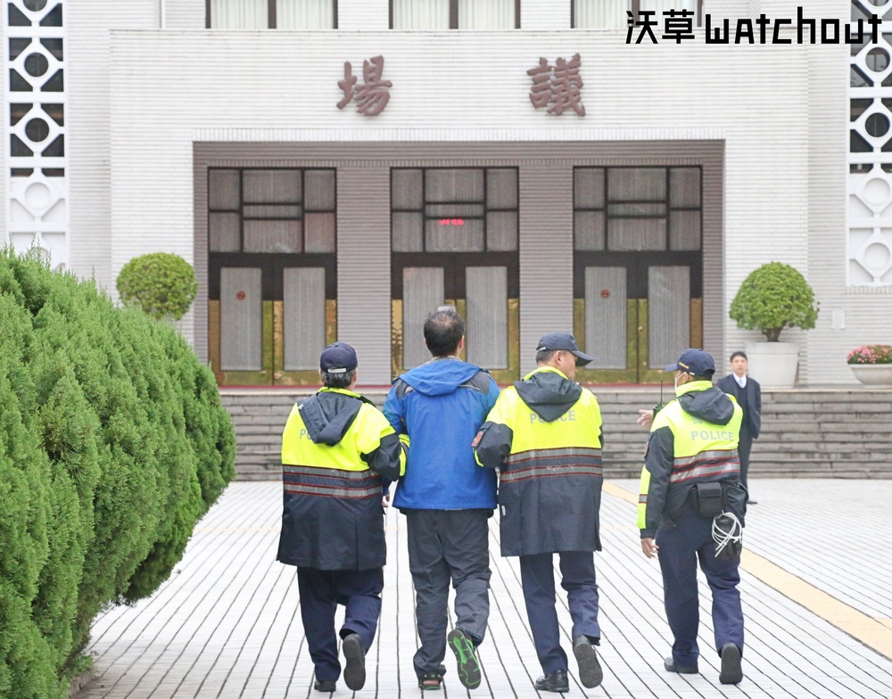 洪崇晏翻牆進入立院遭警方壓制,遭帶離立院前,押送隊伍一度走在昔日三一八運動曾佔領的立院議場前(攝影/蕭長展)