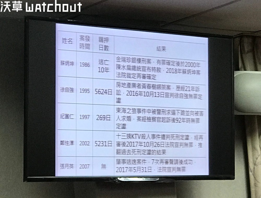 「蘇炳坤案,檢察總長因為知道他被刑求,所以提出四次非常上訴;新竹地檢也提再審,因為知道自己做錯了。最後是由當時法務部長陳定南拜託前總統陳水扁特赦,因為檢察系統發生重大錯誤、所有手段都救不了,還要拜託總統。」備詢的邱太三聽聞頻頻點頭。
