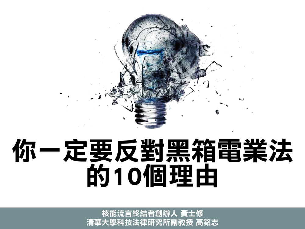 核終創辦人黃士修與清大科法所副教授高銘志製作圖說,放置於「核能流言終結者」臉書專頁,抨擊此次《電業法》修法的缺失。(圖片/黃士修提供)
