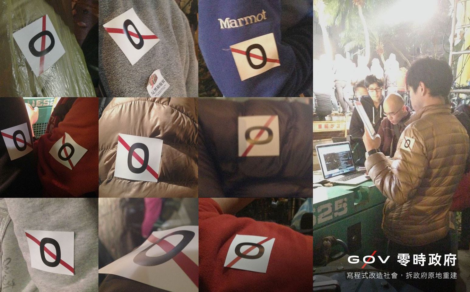 零時政府團隊在身上貼上貼紙方便識別(圖片取自Facebook @evenwu)