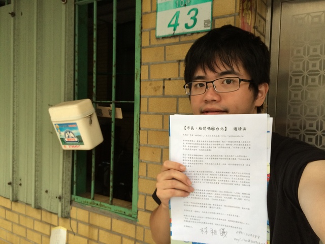 圖為《沃草》發言人林祖儀遞交「市長,給問嗎?」邀請函,但第七位台北市長候選人趙衍慶始終緣鏗一面,從趙衍慶鄰居的口述與實地觀察,得知趙衍慶孑然一身、是一位街友,他為何參選?又有哪些政治抱負?《沃草》將為讀者一一解惑。