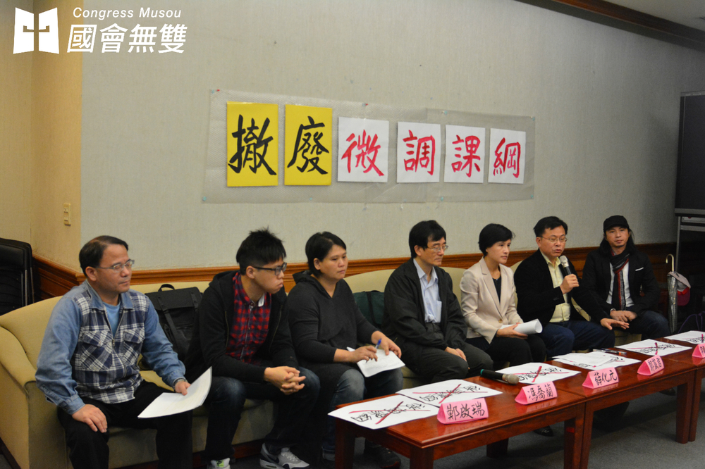 也出席記者會的民進黨立委鄭麗君則說,他在這個會期開議之前就已經準備好提案要求教育部撤銷微調課綱,但等施政總質詢三月底結束終於能處理時,提案卻遭到國民黨拉下協商,很可能要拖到冷凍期過後的四月底才能表決。她呼籲國民黨不要再和民意對立,應該即刻來進行協商,一起要求教育部撤銷微調課綱。