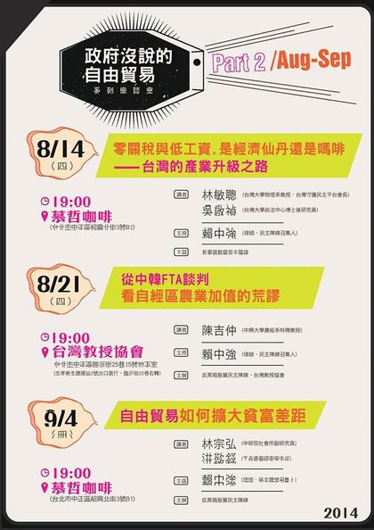 圖說:民主陣線推出一系列「政府沒說的自由貿易」座談,深入探討「自由貿易」的真相。