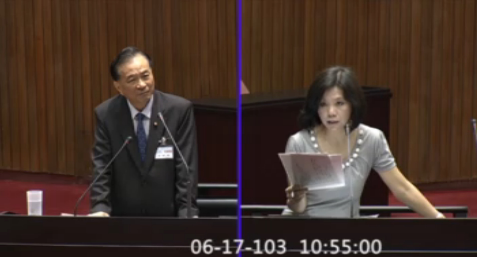 圖說:葉宜津指出,考試委員兼職「兼得很兇」,更進一步針對高永光於2012年擔任考委期間,在政大兼課所獲薪資將近四十萬元,質疑他違反《公務員服務法》第十四條第1項。