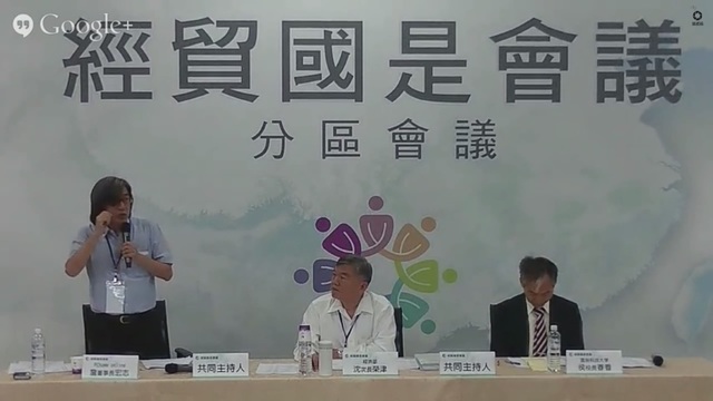 詹宏志認為,經貿國是會議中的共同意見、多數意見跟其他意見,理論上都不會有效果,他更比喻政府開會目的是「做為天線、為了吸收、是不是有我們雷達看不到的東西」不是在權力上,對這些意見有任何用處,這些意見如果涉及到法律,通通要再回到體制去,回到議會去,才能產生結果。