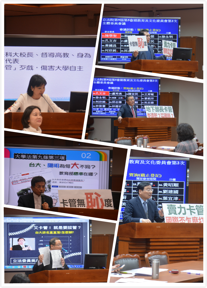 多位中國國民黨立委批評教育部不應該「卡管」,要求教育部儘速批准管中閔就任台大校長。(攝影、製圖/薛翰駿)
