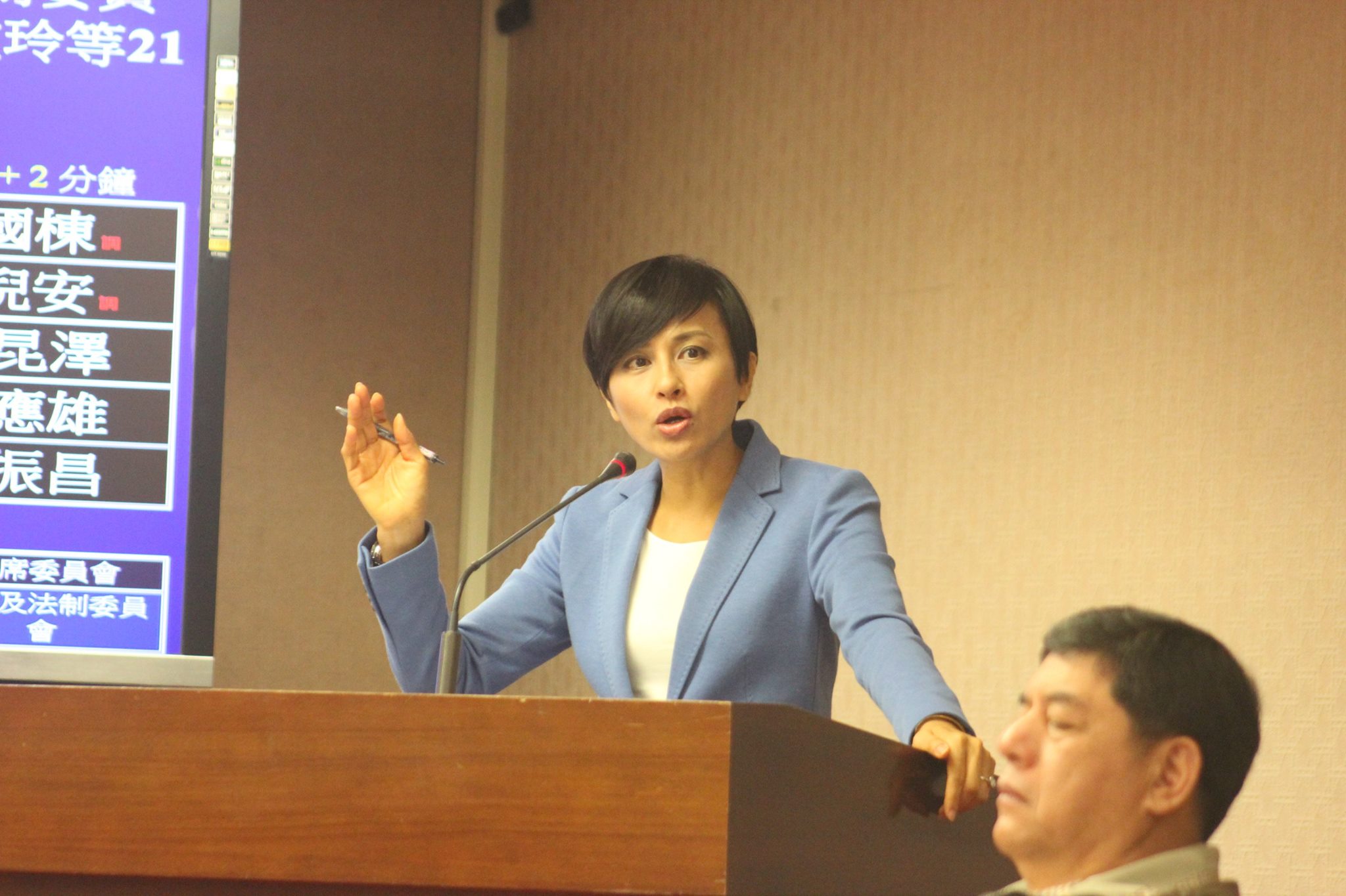 而在此次「台南市正副議長選舉風波」中遭同黨同志砲轟監督不力的立委陳亭妃,上台質詢時強力要求內政部長陳威仁對取消「以無記名投票」書面文字表態,但陳威仁依舊持保留態度,表示「我們不贊成,但只要大院通過,我們尊重」。