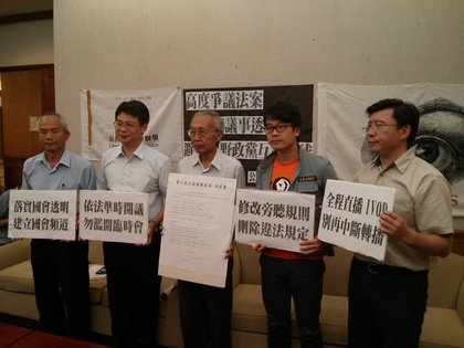 昨(13)日早上九點半,公民監督國會聯盟(公督盟)、公民1985行動聯盟等團體在立法院中興大樓召開記者會,抨擊許多立法委員在選前承諾推動國會頻道,但至今為止就職兩年,國會頻道卻無聲無影。公民1985行動聯盟發言人王希更在記者會上,抨擊立法院現行的旁聽規定根本不合常理。公督盟今天下午實地前往立法院旁聽,卻被告知「表決時不得進入旁聽」,十分荒謬。